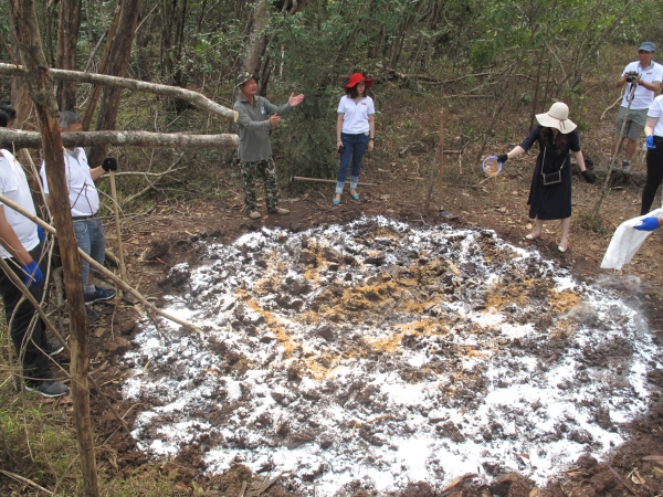 Employees of Pimai Salt Co.,Ltd (PSC) making salt licks for wild animals. Pha Kradas Forest Protection Unit, Khao Yai National Park.