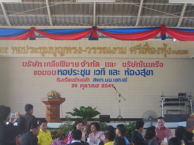 October 20(Friday) 2006 The BoonSong and Wanngam Srifuengfung auditorium was erected by Pimai Salt Co., Ltd. to donated at Ban Kla School