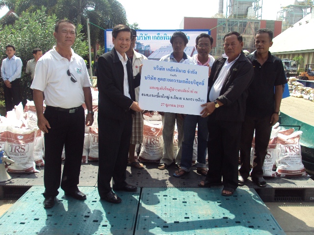 Pimai salt Co., Ltd. and Thai Refined Salt Co., Ltd. Donate relief bags to staffs and communities nearby plant area (Flood victims) 2,200 set. On October 27, 2010