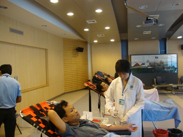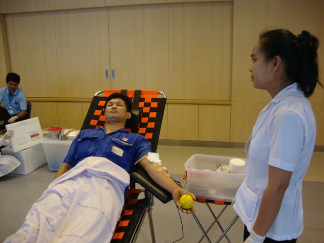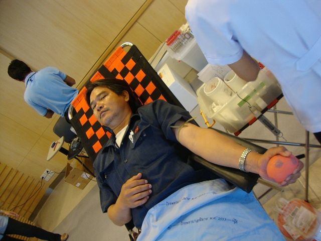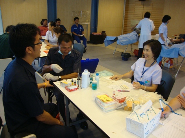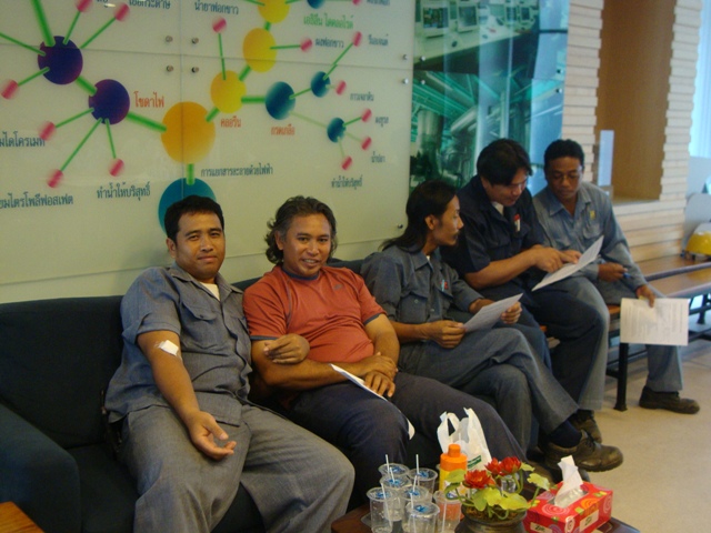 Manager and employees of Pimai Salt Factory. participated blood donation at reception room Pimai Salt Factory Nakhonratchasima for Phimai Hospital on 16 June 2011