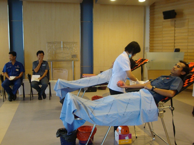 Manager and employees of Pimai Salt Factory. participated blood donation at reception room Pimai Salt Factory Nakhonratchasima for Phimai Hospital on 16 June 2011