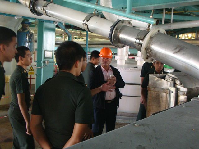 The group from Chulachomklao Royal military Academy 's teachers and cadets (45 persons)? visit?? the manufacturing plant scope of produce pure vacuum salt using brine from? solution mining, Quality control and the environmental management? in? Pimai Salt? Factory on November? 1, 2011