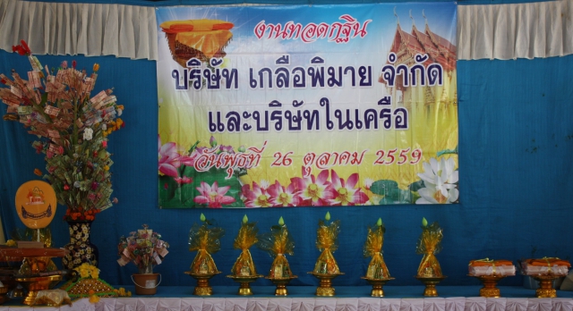 Mr. Arun Incharoensakdi Chief Operating Officer of Pimai Salt Co., Ltd. with employees and business partner jointly Kathin ceremony at Wat Sumrit Tawantok, T. Sumrit, and Wat Krabeungnoi-Chabok, T. Krabeungyai, A.Phimai, Nakhonratchasima. On October 26, 2016.