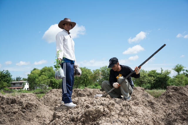 Manager and employees of Pimai Salt Co.,Ltd. Joint to planting trees (500 trees) for increasing green area on concession of Pimai Salt area. On the occasion of World Environment Day June 5, 2017.
