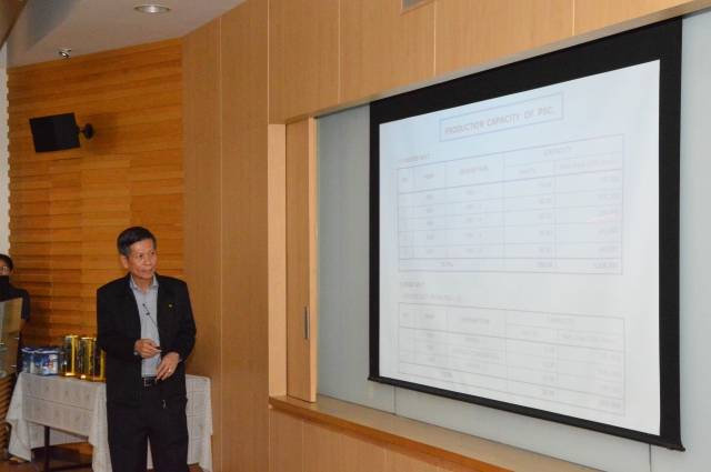 คณะผู้เยี่ยมชมจากกระทรวงอุตสาหกรรม นายจักรมณฑ์ ผาสุกวนิช รัฐมนตรีว่าการกระทรวงอุตสาหกรรม (รวอ.) นางอรรชกา สีบุญเรือง ปลัดกระทรวงอุตสาหกรรม พร้อมด้วย นายสุรพงษ์ เชียงทอง อธิบดีกรมอุตสาหกรรมพื้นฐานและการเหมืองแร่ (อพร.)และคณะ เข้าเยี่ยมชมกระบวนการผลิตเกลือด้วยวิธีเหมืองละลาย ณ โรงงาน บริษัท เกลือพิมาย จำกัด วันที่ 7 มีนาคม 2558