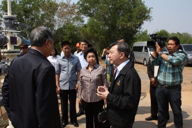 คณะผู้เยี่ยมชมจากกระทรวงอุตสาหกรรม นายจักรมณฑ์ ผาสุกวนิช รัฐมนตรีว่าการกระทรวงอุตสาหกรรม (รวอ.) นางอรรชกา สีบุญเรือง ปลัดกระทรวงอุตสาหกรรม พร้อมด้วย นายสุรพงษ์ เชียงทอง อธิบดีกรมอุตสาหกรรมพื้นฐานและการเหมืองแร่ (อพร.)และคณะ เข้าเยี่ยมชมกระบวนการผลิตเกลือด้วยวิธีเหมืองละลาย ณ โรงงาน บริษัท เกลือพิมาย จำกัด วันที่ 7 มีนาคม 2558