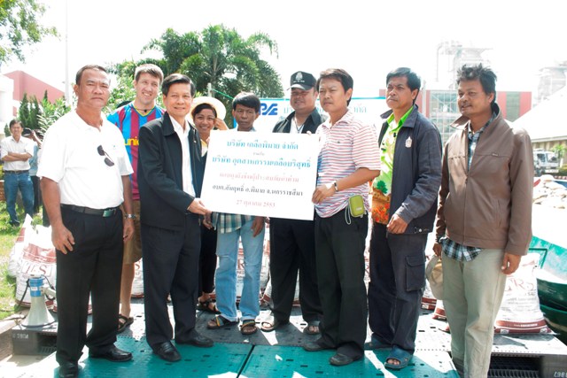 กิจกรรมเพื่อสังคม - บริษัท เกลือพิมาย จำกัด และ บริษัท อุตสาหกรรมเกลือบริสุทธิ์ บริจาคถุงยังชีพแก่พนักงานและผู้ประสบภัยน้ำท่วมในเขตพื้นที่ใกล้เคียงโรง งาน จำนวน 2,200 ถุง ในวันที่ 27 ตุลาคม 2553