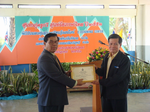 การพัฒนาที่ยั่งยืน - วันศุกร์ที่ 4 กรกฎาคม 2551 บริษัท เกลือพิมาย จำกัด โดย ดร.ธีระพร ศรีเฟื่องฟุ้ง กรรมการผู้อำนวยการ และผู้ให้การสนับสนุน บริจาคศูนย์การเรียนรู้ออนไลน์ให้แก่โรงเรียนธารปราสาทเพชรวิทยา อ.โนนสูง จ.นครราชสีมา