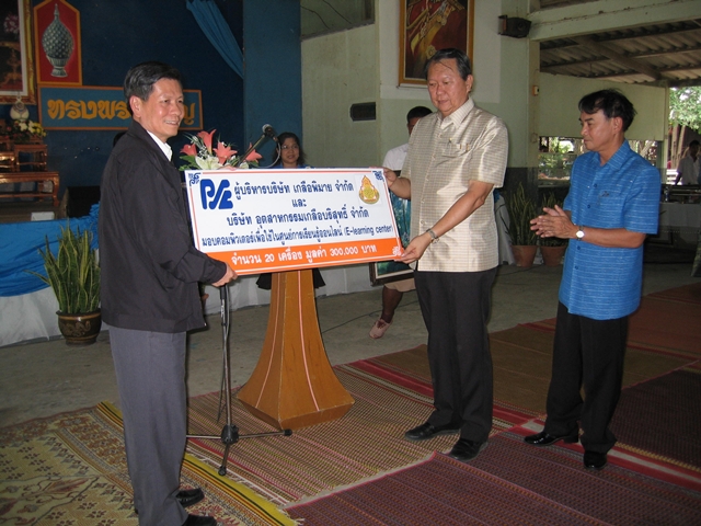 การพัฒนาที่ยั่งยืน - วันอังคารที่ 11 สิงหาคม 2552 บริษัท เกลือพิมาย จำกัด โดย คุณอรุณ อินเจริญศักดิ์ ผู้อำนวยการโรงงาน และผู้ให้การสนับสนุน บริจาคเครื่องคอมพิวเตอร์ ให้แก่ศูนย์การเรียนรู้ออนไลน์ให้ โรงเรียนธารปราสาทเพชรวิทยา อำเภอโนนสูง จังหวัดนครราชสีมา