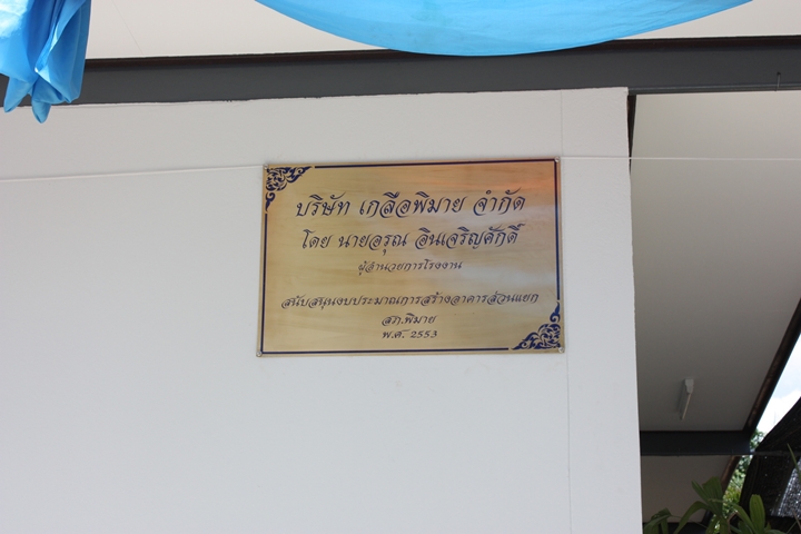 นายอรุณ อินเจริญศักดิ์ ผู้อำนวยการโรงงาน บริษัท เกลือพิมาย จำกัด ร่วมพิธีเปิดอาคารที่ทำการห้องปฏิบัติการงานจราจรสถานีตำรวจภูธรพิมาย ในวันที่ 8 กรกฏาคม 2553 โดยอาคารดังกล่าว ทางบริษัทฯ ได้ให้การสนับสนุนงบประมาณในการก่อสร้าง เพื่อเป็นประโยชน์และอำนวยความสะดวกในการควบคุมการจราจร ของสถานีตำรวจภูธรพิมาย
