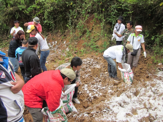 Pimai Salt Co.,Ltd. jointly donated salt? 4.5? tons? for support activity of provincial credit card operating, Kasikorn Bank PCL. to Building Weir, plant tree and contains the mineral to natural salt lick? at Tub Lan National Park (Pha Kep Tawan), A.Wang Nam Keaw, Nakhon Ratchsima, on November 16, 2556.