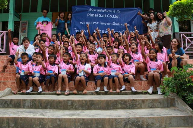 On September 19, 2013, Pimai Salt Co., Ltd. by the management and staff members donated sportswear, sports equipment and salts for teachers and 86 students at Ban Tha Ruea School, Kaeng Krachan district, Phetchaburi province.