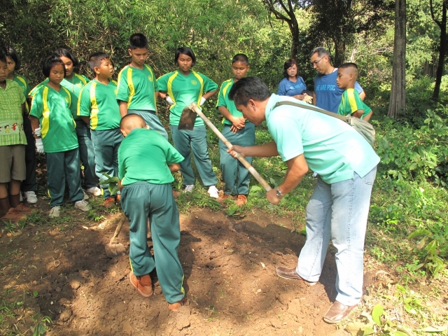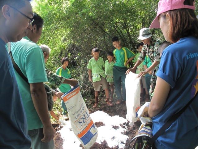 Social Responsibility - The Employees and the students confederate making salt licks for wild animals. , Pimai Salt Co., Ltd. joint project ?Rock salt to salt licks for wild animals?.