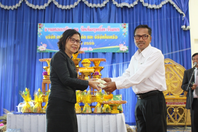 Mr. Arun Incharoensakdi Chief Operating Officer of Pimai Salt Co., Ltd. with employees and business partner jointly Kathin ceremony at Wat Sumrit Tawantok, T. Sumrit, and Wat Krabeungnoi-Chabok, T. Krabeungyai, A.Phimai, Nakhonratchasima. On October 26, 2016.