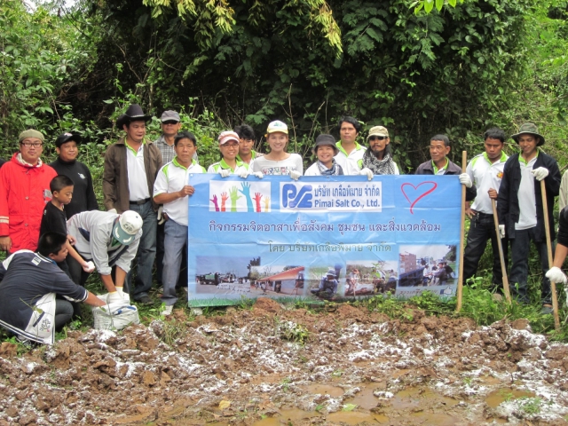 Sustainable Development - Pimai Salt Co.,Ltd. jointly donated salt 4.5 tons for support activity of provincial credit card operating, Kasikorn Bank PCL. to Building Weir, plant tree and contains the mineral to natural salt lick at Tub Lan National Park (Pha Kep Tawan)