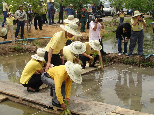 Rice growing ceremony on 17 July 2007, Governor of Nakhonratchasima, Pimai Salt executives, BIOTEC executives and community leader jointed to grow the Jasmine rice on the saline land.
