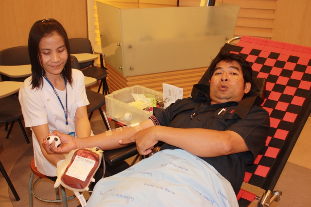 Social Responsibility - 38 employees of Pimai Salt Factory and Regular cooperates with business partner have donated blood to Phimai Hospital on 27 June 2012 at Reception Room Pimai Salt Factory Nakhonratchasima