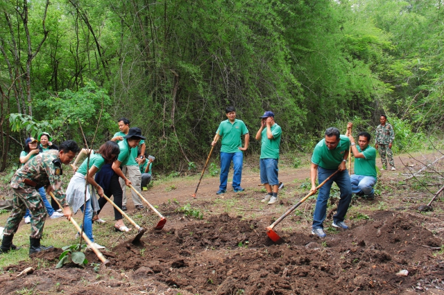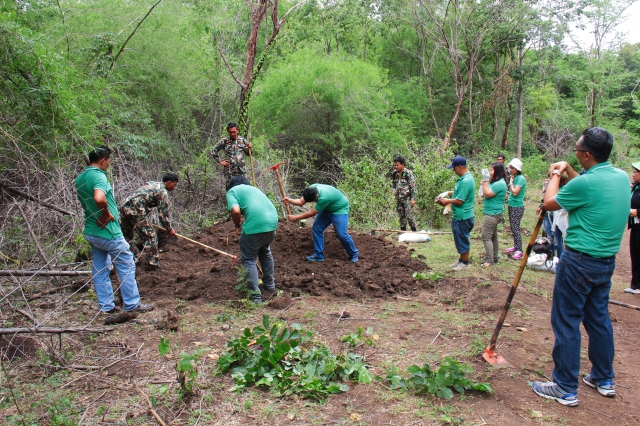 Social Responsibility - Sustainable Dev. - Employees of Pimai Salt Co.,Ltd (PSC) making salt licks for wild animals.