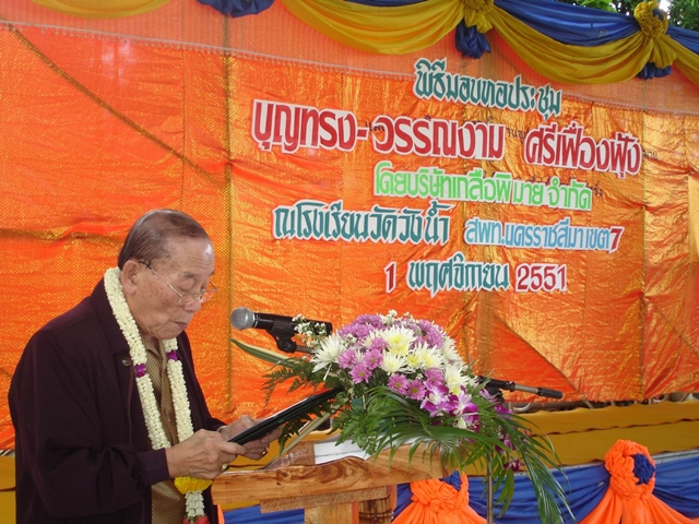 บริษัท เกลือพิมาย จำกัด โดย ดร.บุญทรง ศรีเฟื่องฟุ้ง ประธานกรรมการ และผู้ให้การสนับสนุน บริจาคอาคารหอประชุม ให้แก่ โรงเรียนวัดวังน้ำ อำเภอพิมาย จังหวัดนครราชสีมา ในวันเสาร์ที่ 1 พฤศจิกายน 2551